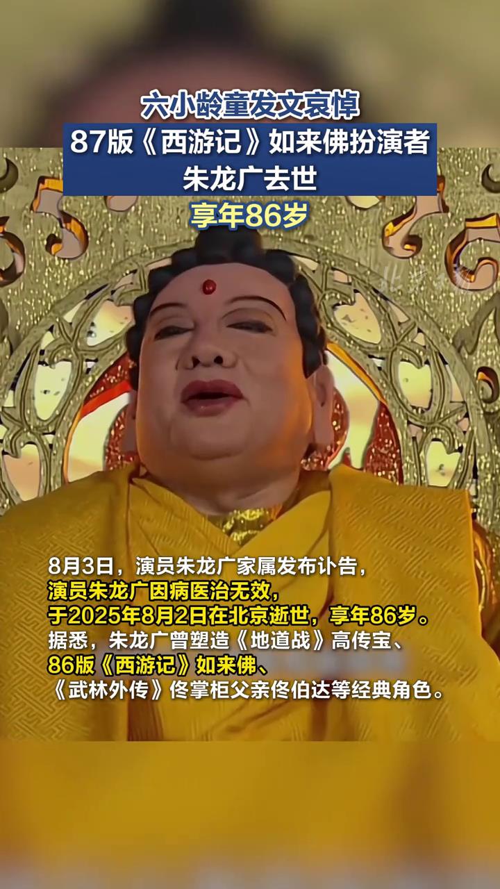 2025 年 8 月 2 日,北京的天空仿佛也在为一位艺术巨星的离去而黯然失色。这一天,演员朱龙广因疾病的折磨,永远地离开了我们,享年 86 岁 。消息一经传出,迅速在社交媒体上掀起波澜,各大平台瞬间被悲痛的氛围笼罩,无数网友纷纷发文悼念,影视界也陷入一片哀伤之中。对很多观众而言,朱龙广这个名字或许并不如当下的流量明星那般耳熟能详,但他所塑造的经典角色,却如同璀璨星辰,镶嵌在影视历史的天幕之上,熠熠生辉,影响了一代又一代的观众。