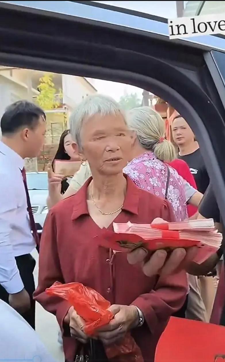 新郎家的长辈站在车边,手里攥着一沓钱,看她数得差不多,赶紧凑过去问“够不够?不够我补”。新娘抬头扫了眼那沓钱,又低头继续数,直到数完最后一张,才把钱塞进包里,慢悠悠推开车门。旁边的伴娘想扶她,她摆了摆手,踩着红地毯往院里走,身后的宾客议论声更大了:“这哪是结婚?像在谈生意”“先验货再成交,也太直白了”。