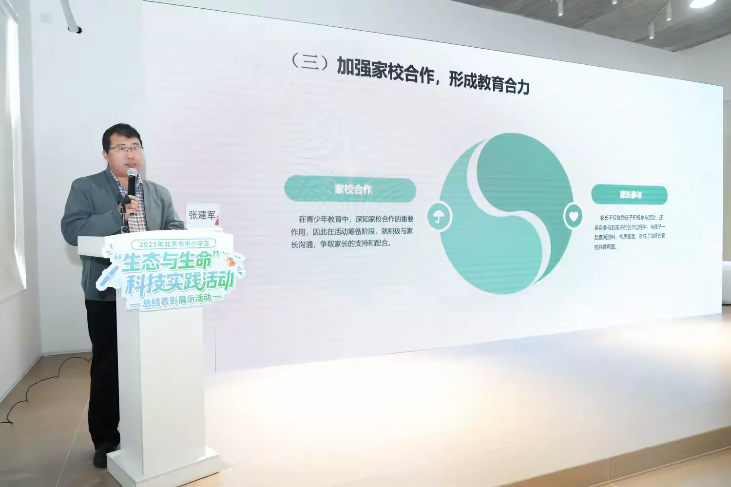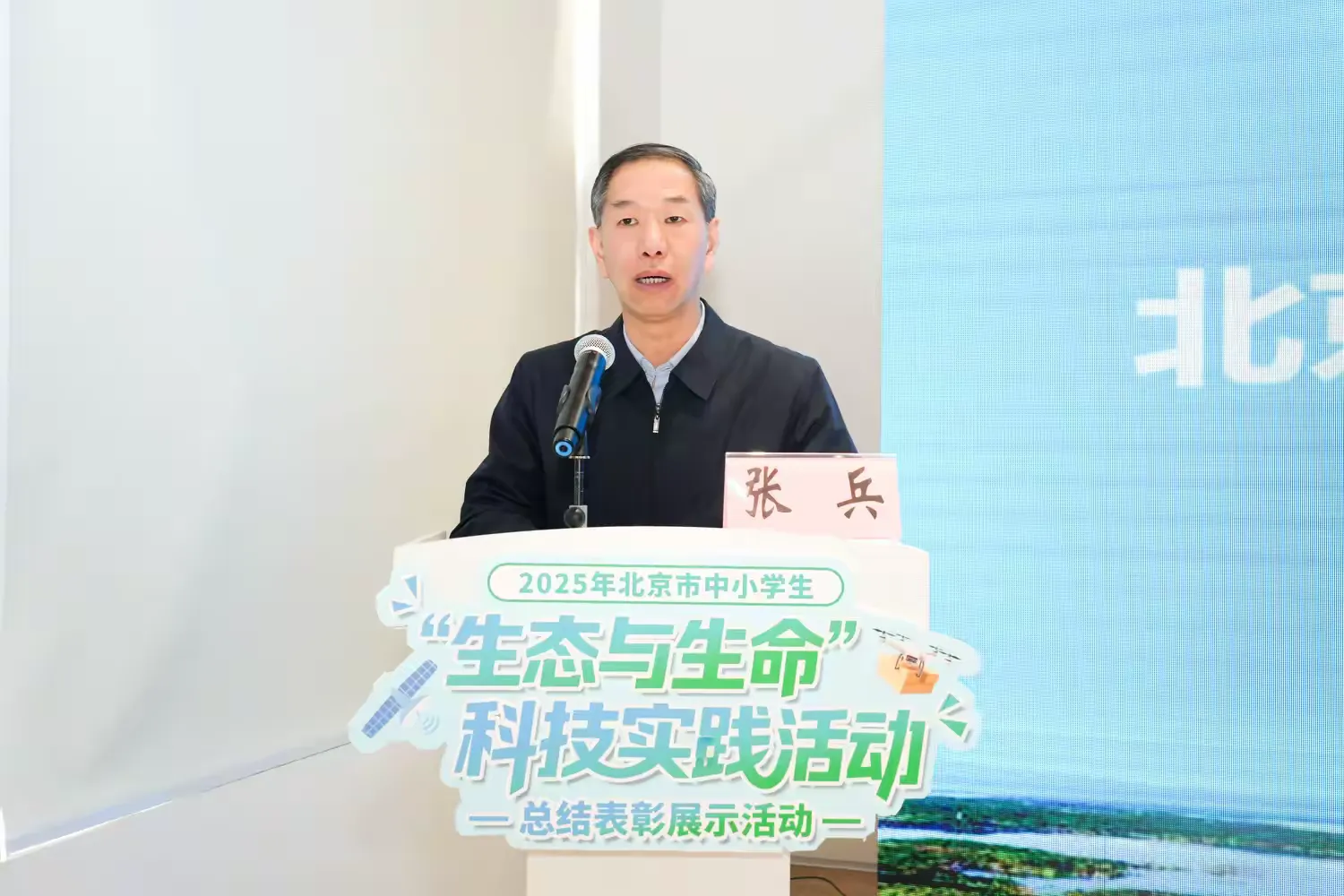 领导讲话。北京市教委体卫艺处张兵处长在讲话中肯定了此项活动的育人成效,为推动活动更好开展,提三点要求:一是要永葆探索精神,争做科技创新赋能生态保护的追求者;二是要厚植生态情怀,争做人与自然和谐共生的践行者。三是要强化责任担当,争做生态文明理念的传播者。