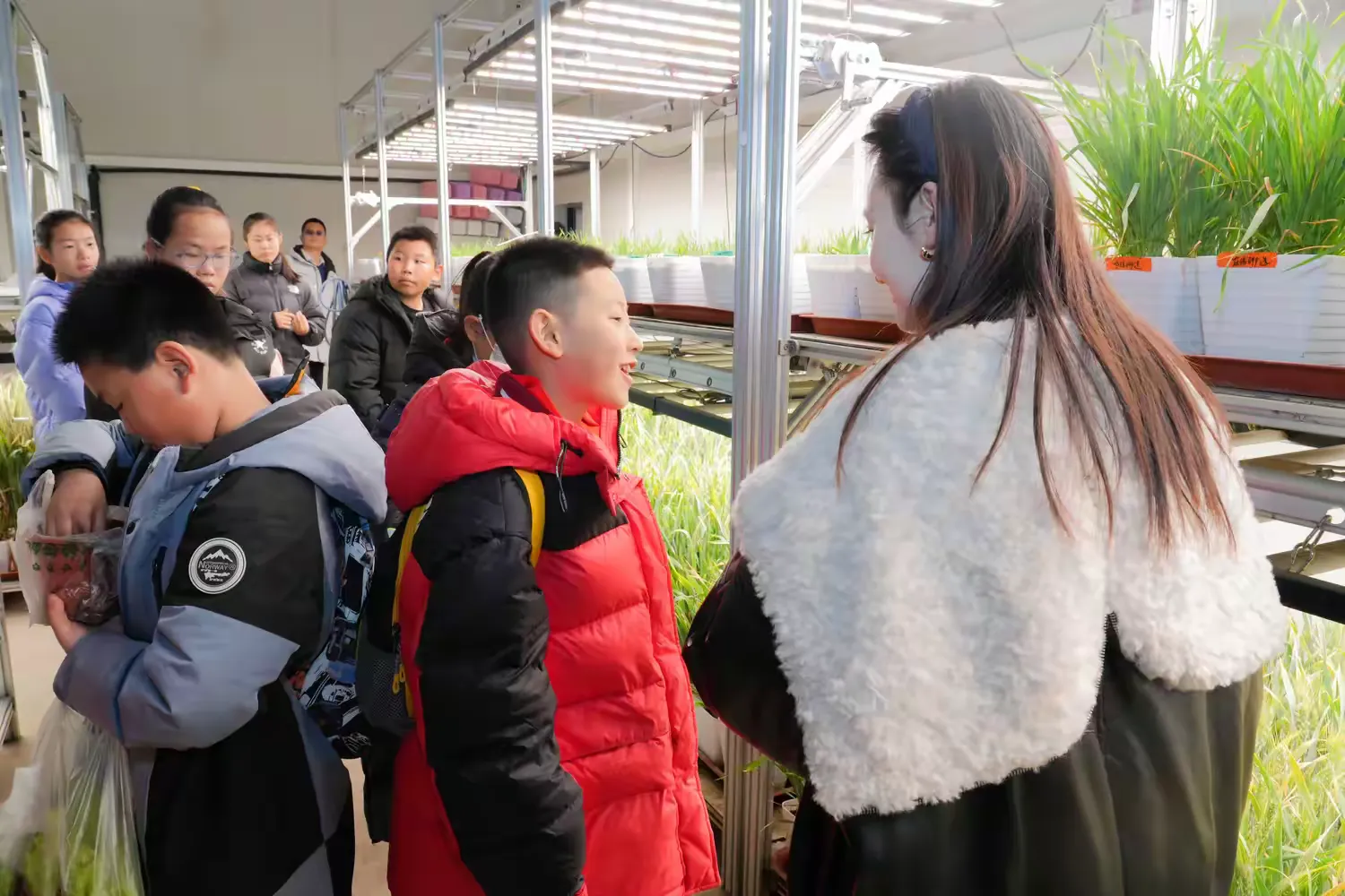 实践考察。下午组织师生踏上“神奇种子农场”研学考察之旅。这里汇聚中国农业科学院、中国农业大学、北京市农林科学院、北京农学院等顶尖科研团队,依托现代化生态园区与千亩良田,开展各类谷物前沿实验。在智能温室小麦实验室与加代室里,学生目睹四季育种的“加速魔法”;在种子展馆,他们触摸万年稻菽的时空脉动;动手环节更是妙趣横生,亲手制作种子冰箱贴,播下“魔豆”许愿,槌打艾草清香,穿梭大棚采摘时令鲜蔬。一粒种子,一方科技,孩子们真切感到万物生长,如此神奇,农业未来,因科技而震撼。