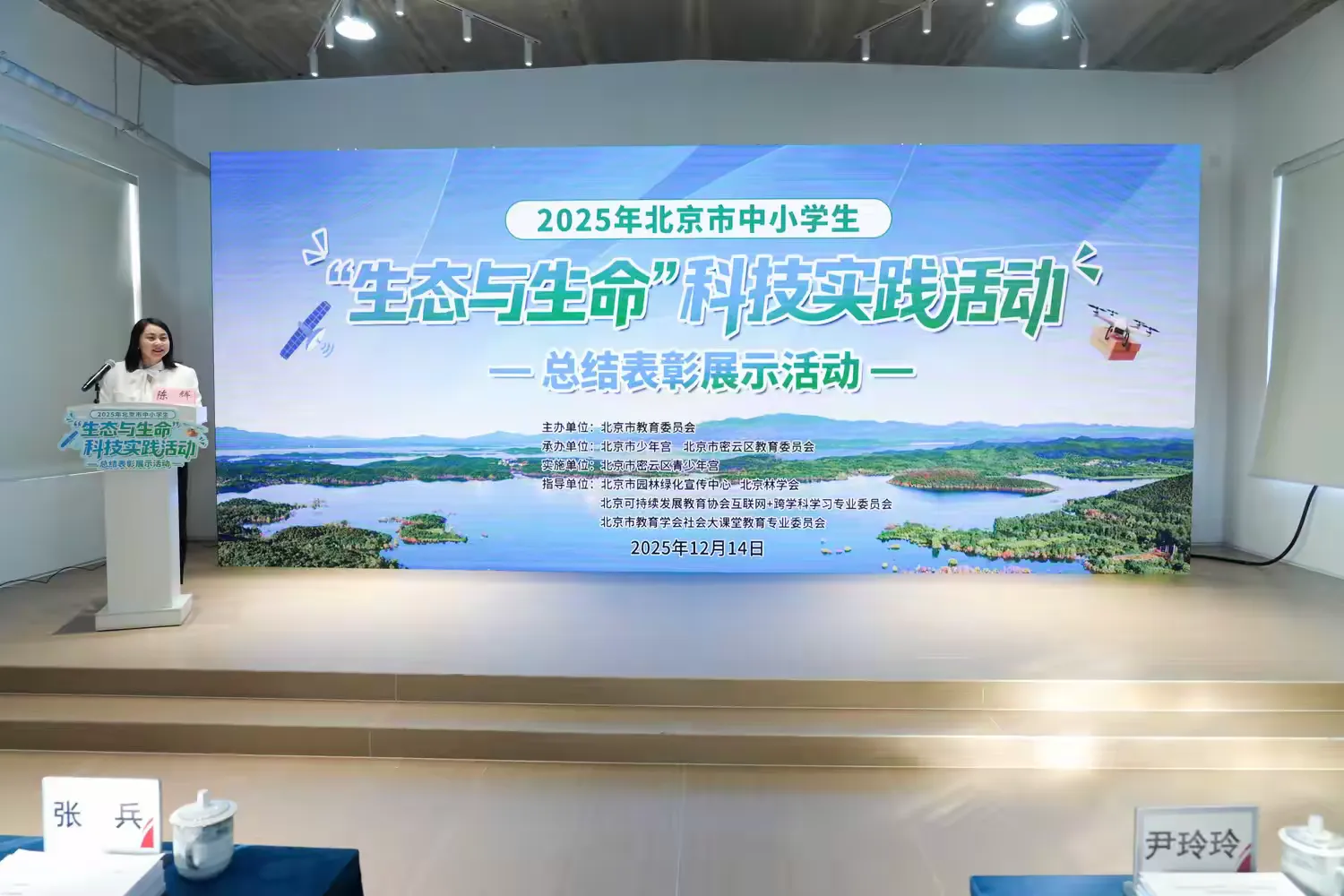 2025年12月14日,由北京市教育委员会主办、北京市少年宫和密云区教育委员会承办的北京市中小学生“生态与生命”科技实践活动总结表彰展示活动成功举办。本次活动得到了北京市教委领导、指导单位、各区校外教育机构、各区教委领导的大力支持。活动吸引了市、区相关学校的师生、家长现场参与,以及线上观看直播活动的还有玉树、库伦相关学校的领导、教师、学生们等4000余人参加本次汇报活动。