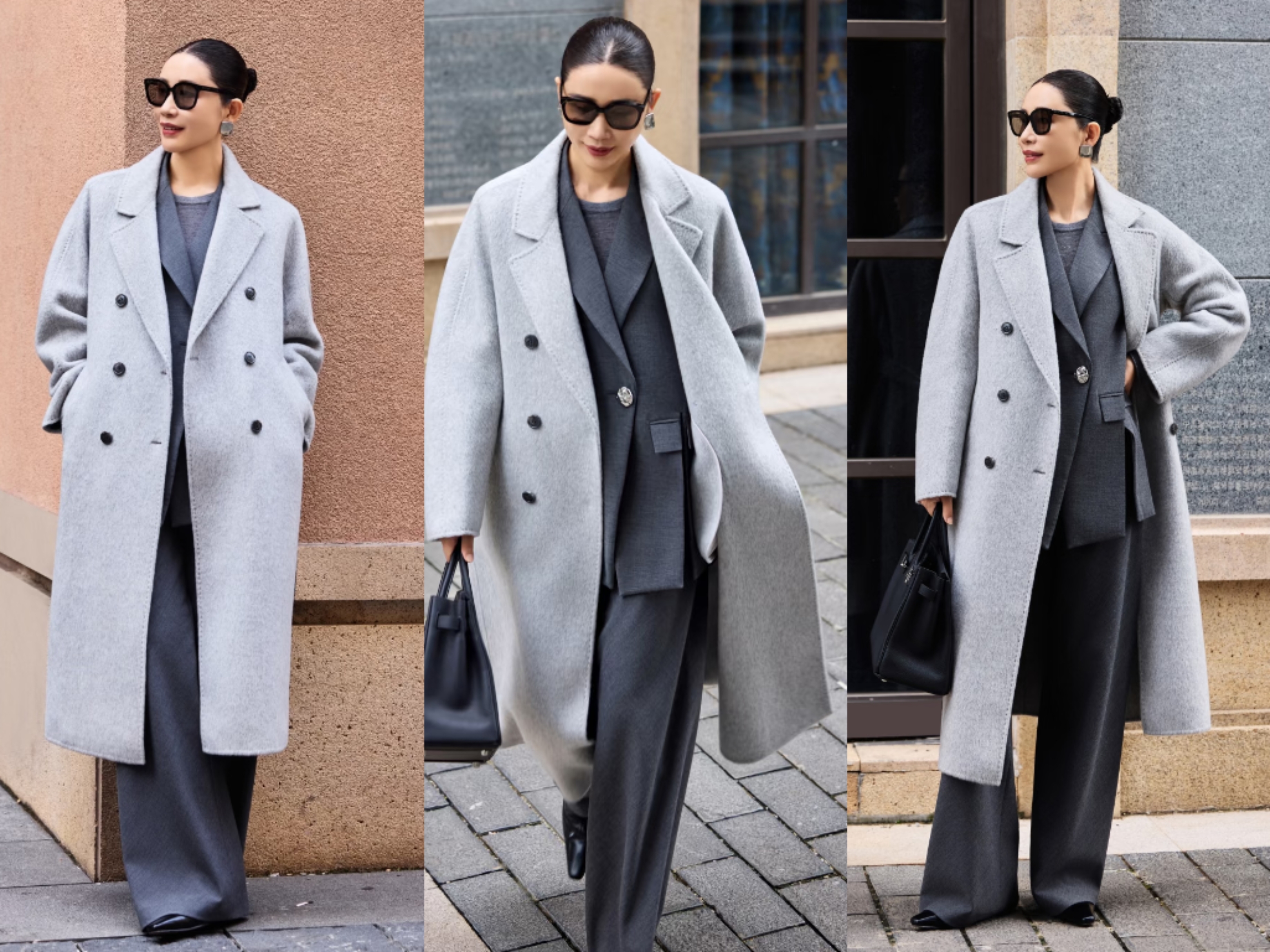 叠穿是冬季常用的搭配思路,利用灰色单品进行叠穿,是职场四五十岁女性最不容易出错的组合,保暖时髦又高级。搭配时,注意内搭修身,中间合体,外套宽松的组合方式,穿出利落不臃肿造型。