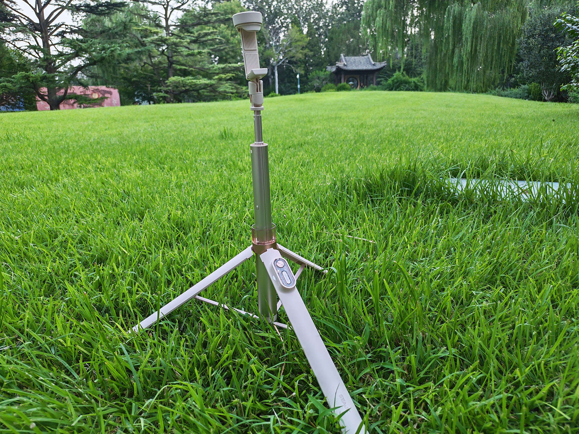 为了达到稳固性的目的,它的三片脚片直接做到了27厘米,展开的抓地面积838平方厘米,试了下大理石路面以及草坪,只要底部碰到地面,支架就会精准弹开,然后调整一下就能轻松稳固的立得住。