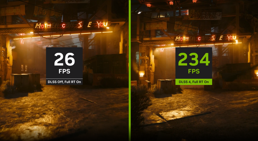 RTX 50系列显卡支持NVIDIA最新的DLSS 4技术,通过第五代 Tensor Core,可基于 AI 生成多帧画面,在全新Transformer模型加持下,DLSS 4不但能够提供更好的画质和效率,还能通过多帧生成技术巨幅提升游戏帧率,让4K游戏大作能够实现像电竞网游那样数百帧的超高流畅度!