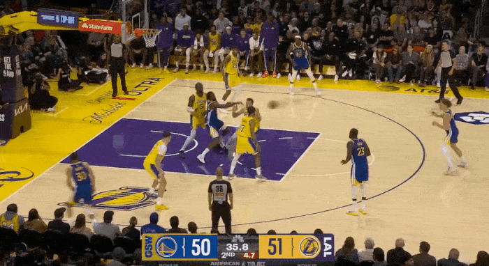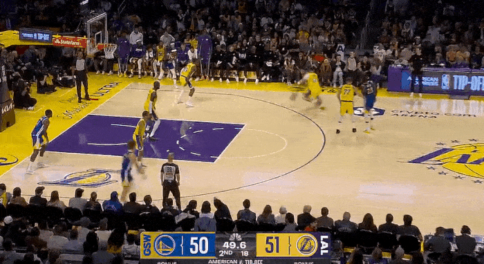 NBA常规赛,湖人对阵勇士的比赛正在进行中。