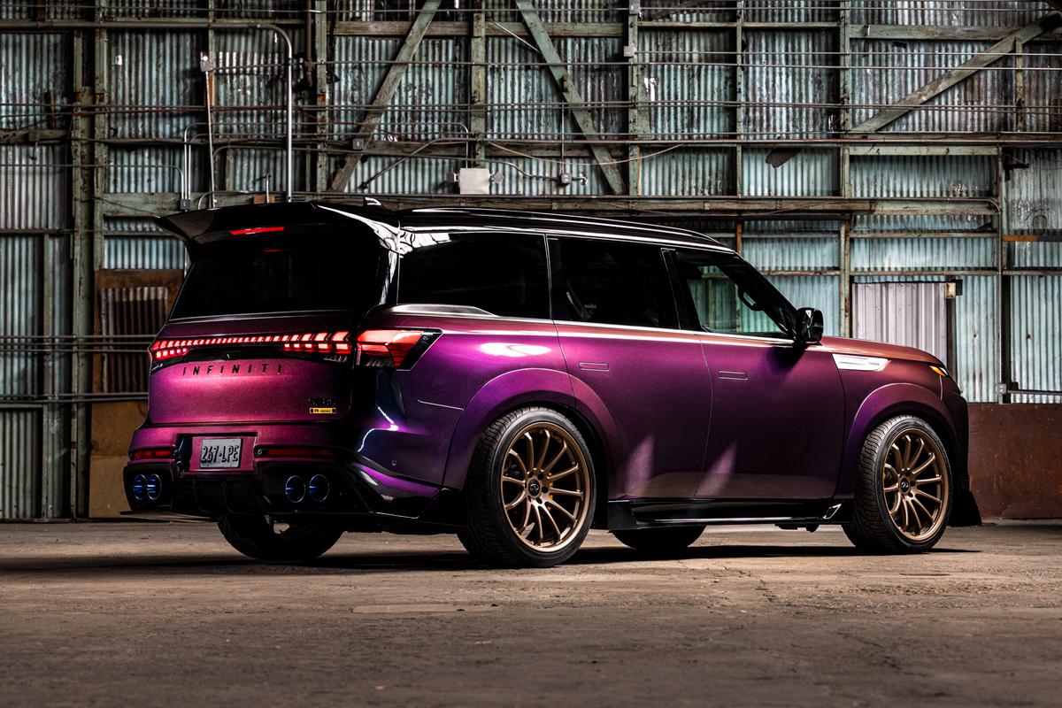 从官方图片中可以看到,英菲尼迪QX80 R-Spec概念车采用了名为Midnight Purple(官方命名,可译为:午夜紫)的渐变色车漆,这款车漆也曾在日产GT-R R34和R35上都使用过。