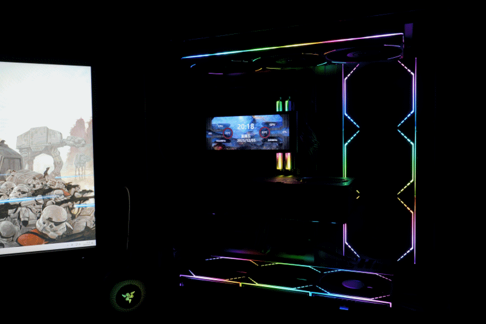 屏幕采用的是USB Type-C口连接,使用利民官方TRCC控制软件就能自定义屏幕显示效果,显示效果直接看开篇的动图效果或者我同名账号的抖音或者小红书视频即可,图片哪怕是动图效果都没有视频好看。