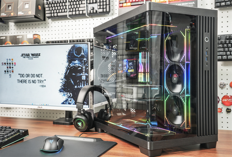 360°动图来一张,TK-4机箱采用无立柱左右分仓的双曲面大海景房设计,搭配U型双曲面钢化玻璃侧透拥有双折弯2.5面环视效果堪称大海景房,495×298.6×495mm的三围,CPU散热限高175mm,显卡限长460mm,电源限长200mm。