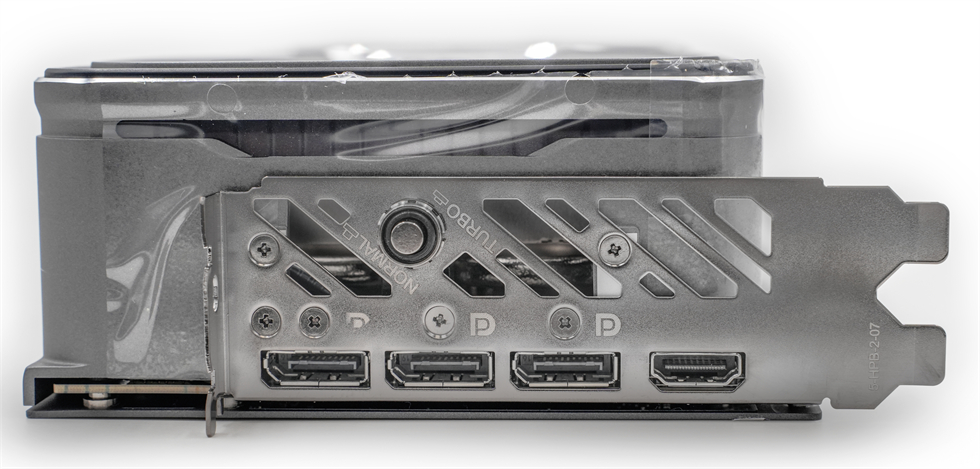 1* HDMI 2.1b+3*DP2.1b接口,上面还有iGame系列一脉相传的一键超频按钮,按下即可启动OC模式。