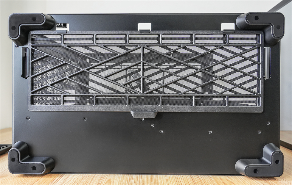 底部四角均有加大型的L型防滑脚垫设计,更稳定,底部进风有可拆卸式防尘网加持。