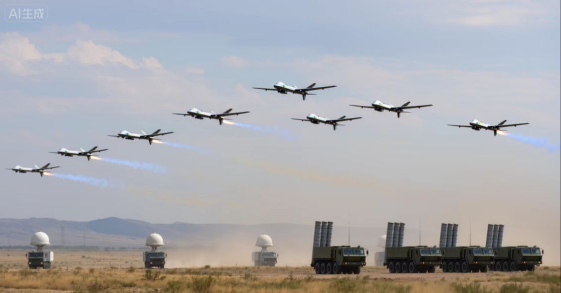 图片描述:模拟乌军无人机集群攻击俄军S-400系统的场景