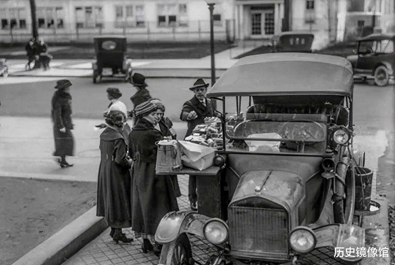 在1919年,华盛顿街头就已经有这种卖食品的车,这是售卖三明治的福特T型车。