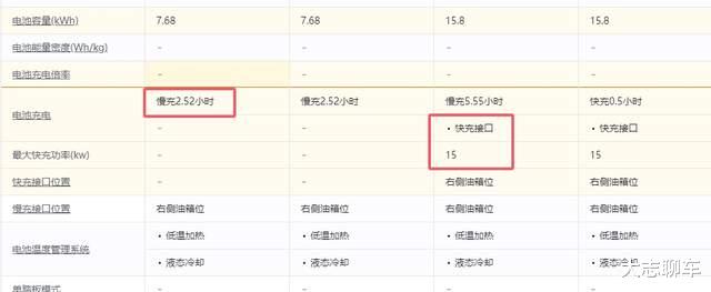 再然后,就是补能焦虑问题了,低配版,人家是没有给安排快充的,你只能去找那些慢充桩,更要命的是慢充要2.52小时,虽然,不少车主觉得顶配也不过才15kw的快充,但架不住电池包才15.8kwh,这个快充也够用了,基本可以保证你在一个小时内把电给安排上,你说,这时候,只有慢充的车主,你的补能焦虑能不大吗?