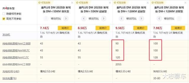 所以,我觉得现阶段,最佳选择就是顶配版得10.38万那款秦PLUS是最值得推荐的,其他配置,如果你是把秦PLUS当成油车来开,那就当我没说就行了,可如果你是把秦PLUS当插混车,最差,我也建议你去考虑那款进取型,最起码人家续航是真的给到位了,能帮你节约很多不必要的麻烦和事情。