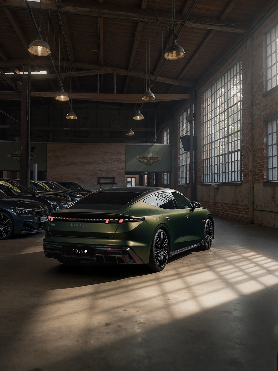领克10 EM-P的破晓之光日行灯、黑钻棱切穹顶与锋曜运动套件(全新前唇、侧裙、小尾翼)相互呼应,配合21英寸锋曜轮毂与可升降隐藏式尾翼,传递出强烈的运动感与科技感。