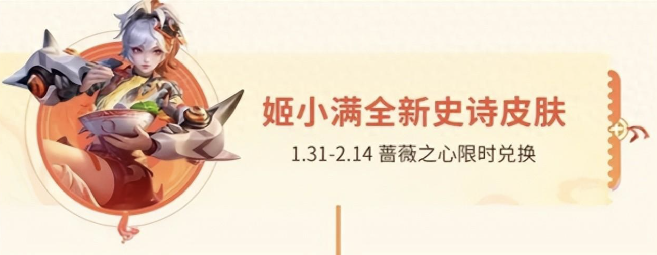 1月31日至2月14日,姬小满的新春史诗皮肤在蔷薇珍宝阁等你来兑换,如果你有足够的蔷薇之心,不妨考虑兑换这款特效出众的皮肤。