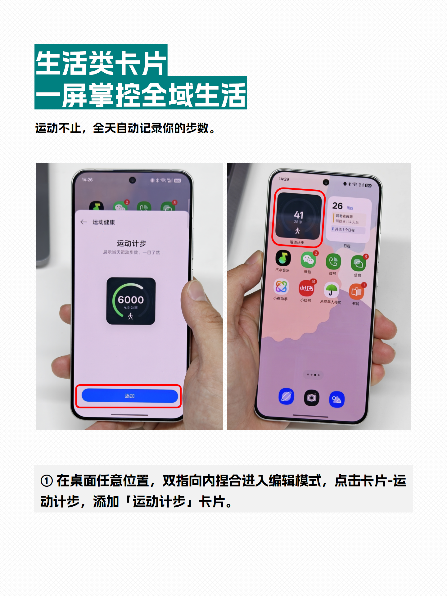 ✏️添加方法:在桌面双指向内捏合进入编辑模式,点击“卡片”,选择“纪念日”卡片添加。