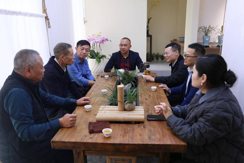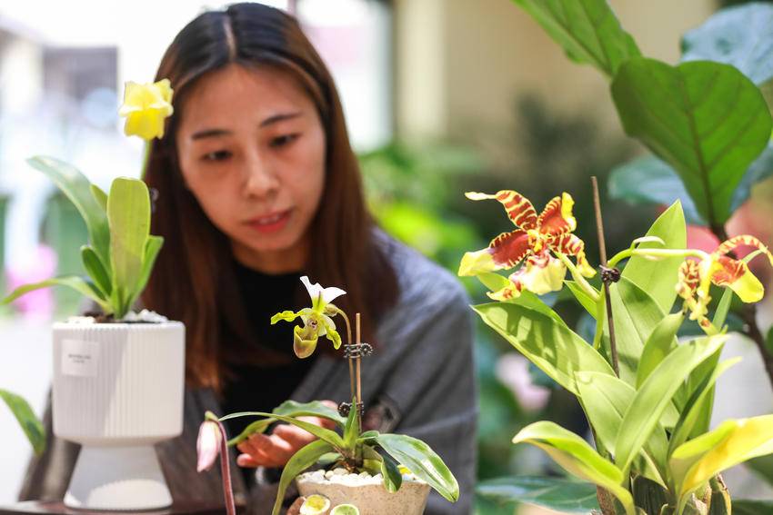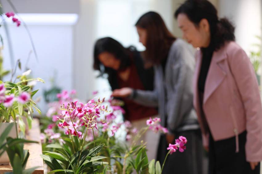 图为11月1日,兰友在秭归县九歌巷子兰花馆赏花休闲。