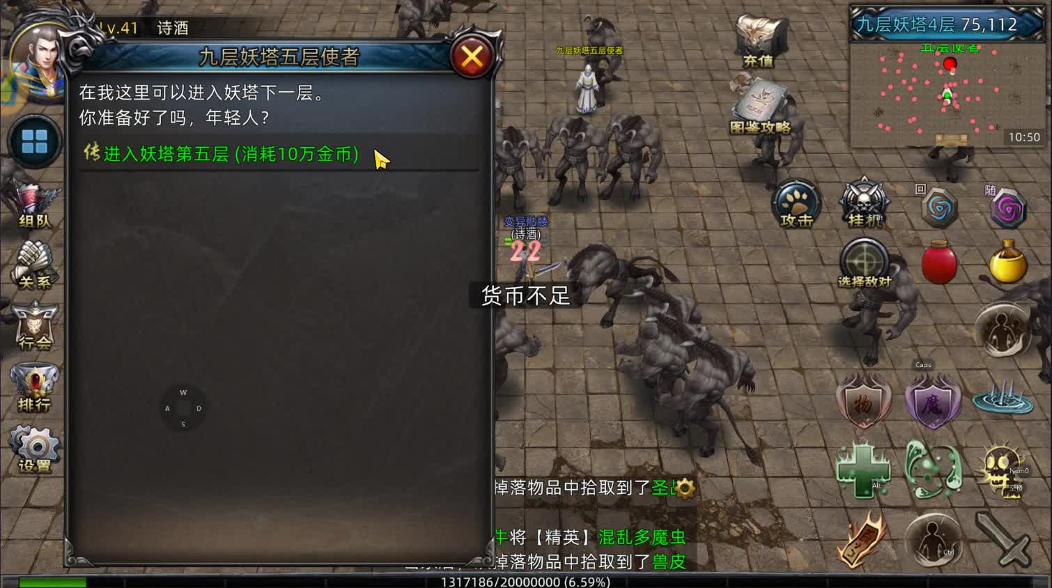 第三层就开始坑起来了,首先是满地的钳虫就有一定的压力,不过一般大哥打起来应该还是比较容易的,毕竟我这个低等级也不是打不过。就是容易拉一大群容易被群殴死,然后就是去第四层,坑爹啊,5万金币,这可是纯纯的金币啊,都是一点点打出来的。