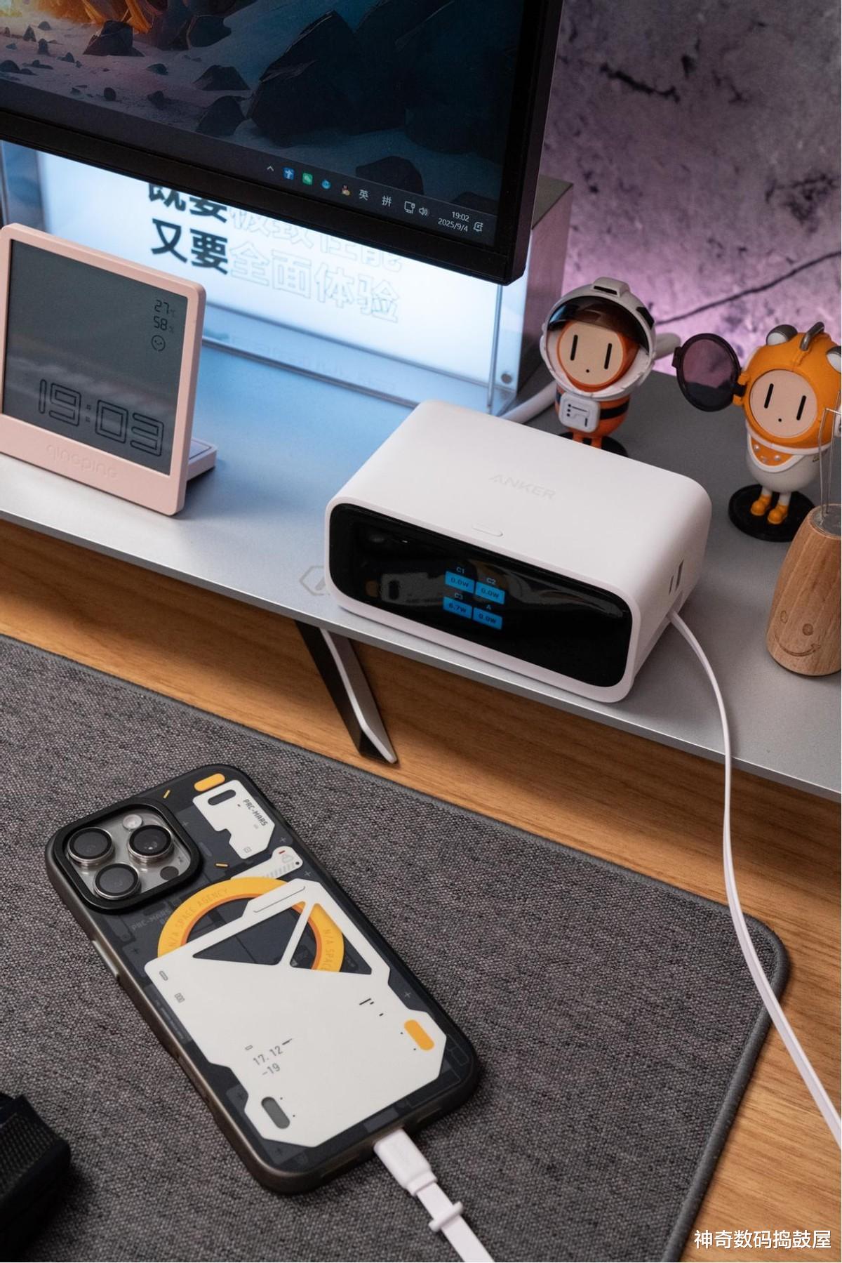 跟你说,没买Anker Nano桌面充Mix之前啊,我那桌面简直就是个“充电设备战场”, 插排、充电器、各种线堆得跟小山似的,桌上乱得哟,想找个东西都得扒拉半天,烦得不行!结果自从入手它之后,好家伙,桌面直接“改头换面”了。现在就一个Anker Nano桌面充Mix往桌上一放,所有设备——手机、平板、耳机、手表,想充电都往它这儿插,再也不用一堆充电器挤着了。你瞅瞅现在这桌面,整整齐齐、清清爽爽的,哪还有之前那乱糟糟的样子?找东西也方便多了,简直不要太舒心!