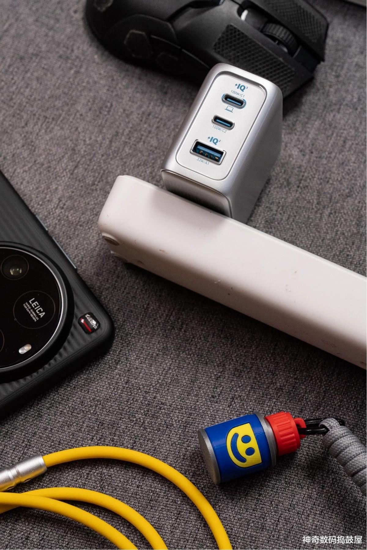 如果你只用其中一个USB-C口 (不管自带的线,还是那个备用口),或者只用那自带的两条USB-C线中的一条,它能拿出100W的大劲头,给大功率设备充电特别快。