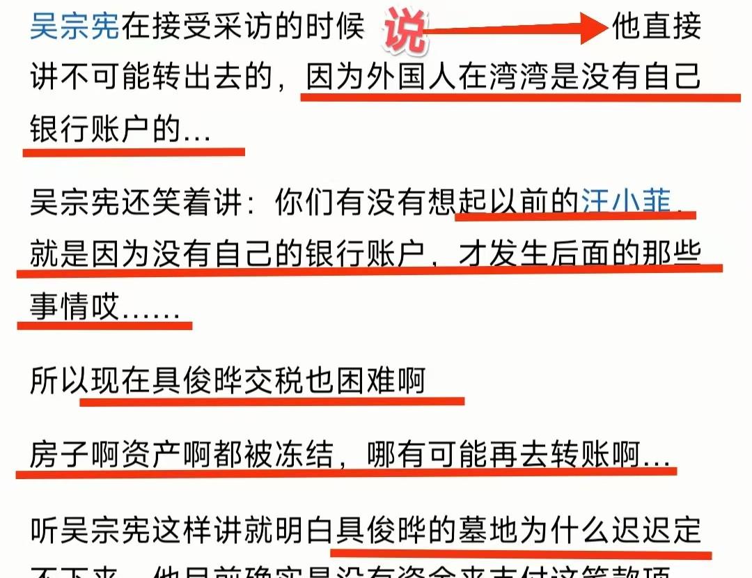 事情的真相显得讽刺,吴宗宪在接受采访时提到,大S的财产因进入法律继承程序而被冻结。