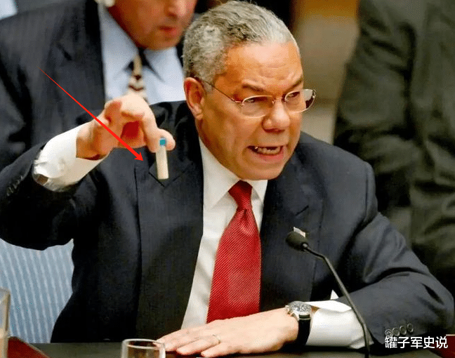2003年,在联合国安理会上,美国国务卿鲍威尔手拿一瓶“洗衣粉”,上下嘴唇一碰,就说是萨达姆研发的 “生化武器”,为美国入侵伊拉克找到了一个冠冕堂皇的理由。
