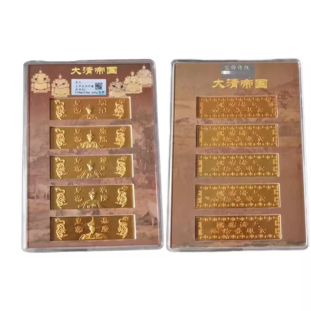 叙事价值稀缺:每枚金条对应一位帝王的功业(顺治开国、康熙拓疆、雍正革新、乾隆盛世、嘉庆守成),是 “清代盛世史” 的黄金浓缩本;