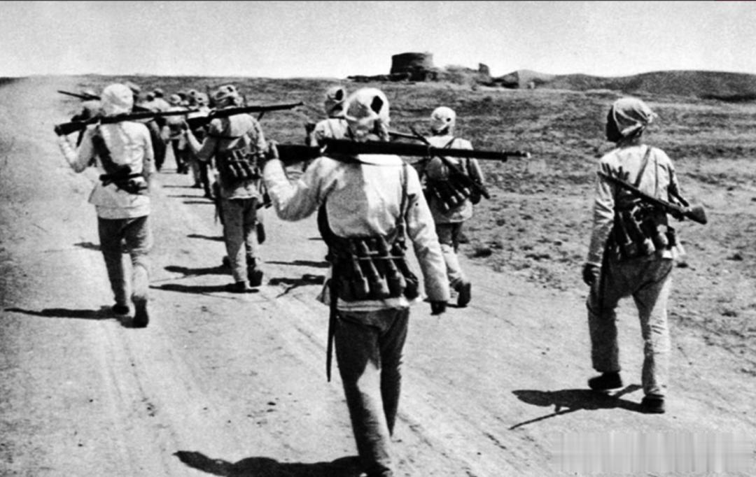 北面的伪军队伍绵延行进,南面的日军步骑炮混编队伍,也在相向靠近。