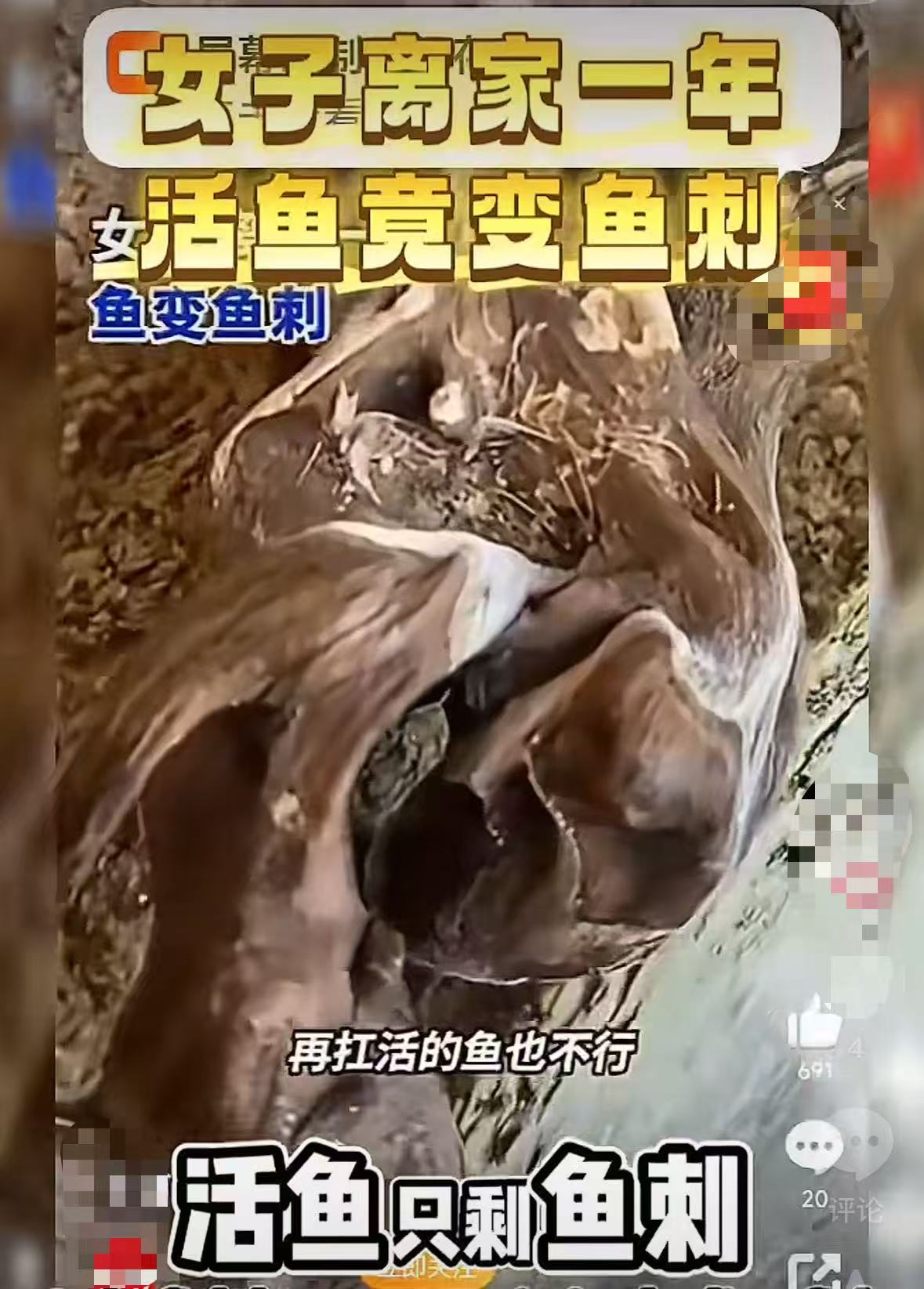 时间过去整整一年。今年11月25日,李女士回到家,走近鱼缸时愣住了——鱼缸里一滴水也没有,原本游动的小鱼不见了,只剩下几根细小的鱼刺留在缸底。她仔细回想才意识到,东北入冬后室内供暖,空气非常干燥,鱼缸里的水在无人照看的情况下,一天天蒸发殆尽。鱼失去了生存所需的水,最终只剩残骸。