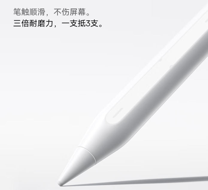 这款电容笔具备全局防误触功能,双手搭在屏幕上也能精准书写,并且它搭配POM材质笔尖的同时还内置了高性能稳定芯片,书写的顺滑度还不错,较少出现断触的情况。值得一提的是它有随手写功能、滑动截屏功能以及涂鸦停顿功能,在使用的时候能快速操作,实用性不错。此外,在笔帽上有三灯提示电量情况,比如红灯亮时就代表电量小于30%,使用户告别电量尴尬的情况。在充电方面,它支持磁吸充电,而且满电后可以连续使用10h,续航能力还不错。不过这款设备静置五分钟会自动进入休眠模式,虽说能节省电量,但频繁的休眠可能会打断用户的创作节奏。