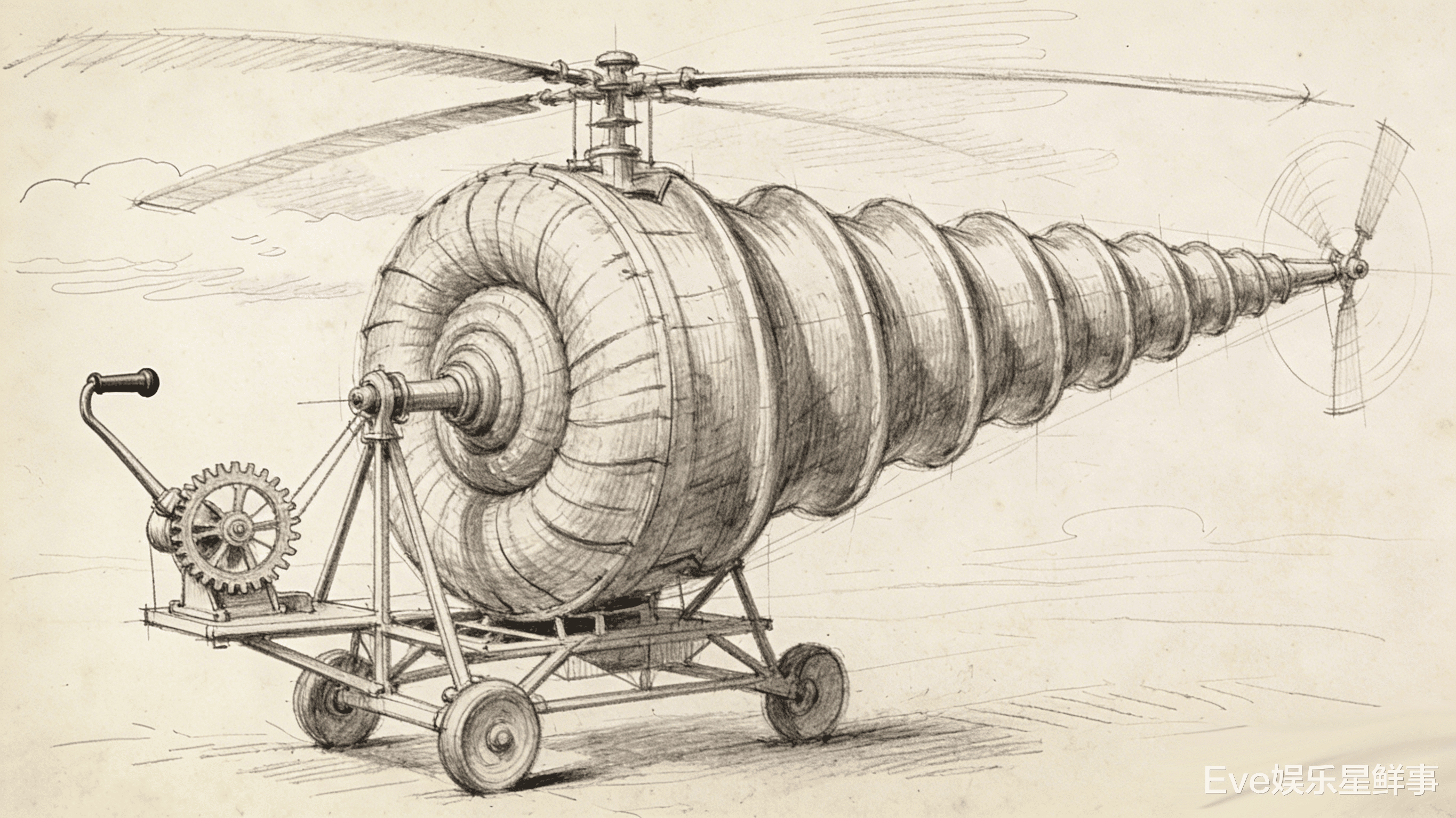 1483年,达芬奇提出直升机设想,还画了草图,用上浆亚麻布做巨大螺旋体,像个大螺丝钉,靠弹簧旋转起飞。驾驶员站底盘上拉钢丝绳改方向。19世纪末在米兰图书馆发现的1475年图纸,证明这想法比莱特兄弟早了400多年。西方人说这是最早直升机蓝图,一点不为过。