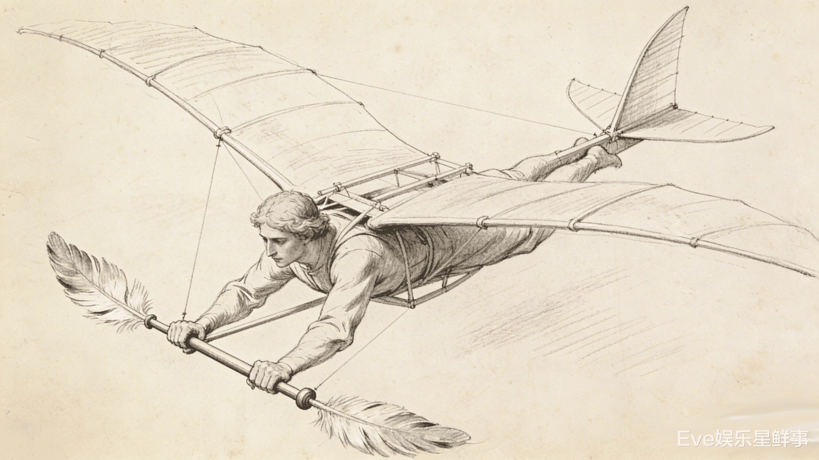15世纪初,达芬奇设计了扑翼机:人俯卧在中部,脚蹬后板,手扳带鸟羽的横杵,像划桨一样扇动空气。这方案是他研究鸟翅、结合物理和解剖知识想出来的,图纸至今保存在博物馆。虽没造出来,但“仿生飞行”的思路,比后来飞机发明早了几百年。