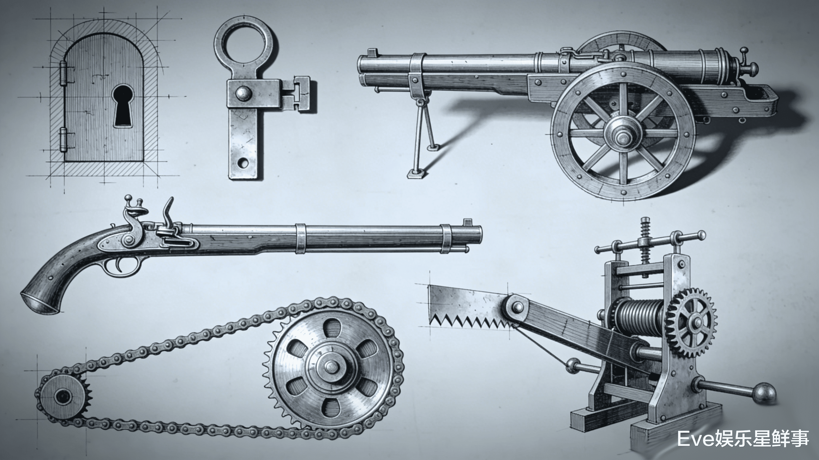 达芬奇这家伙特别会攒发明。1490年左右,他把之前琢磨的门锁零件、传动链条、切削机切痕转轮,东拼西凑出了簧轮枪。这枪的零件跟他的其他发明高度相似,说不是他原创的,谁信?跨界整合这招,他500年前就玩明白了。