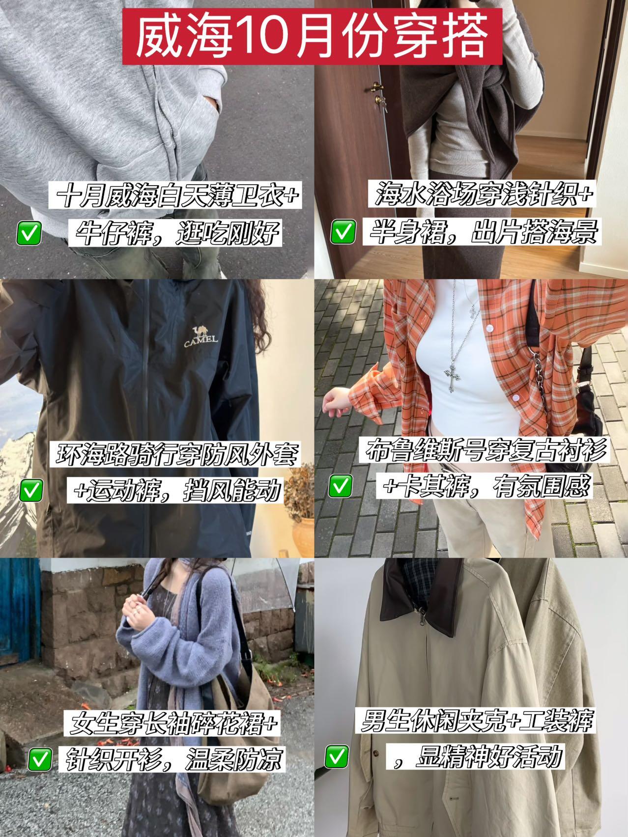威海秋季平均20℃🍂海边早晚温差约5℃,薄外套必不可少🧥