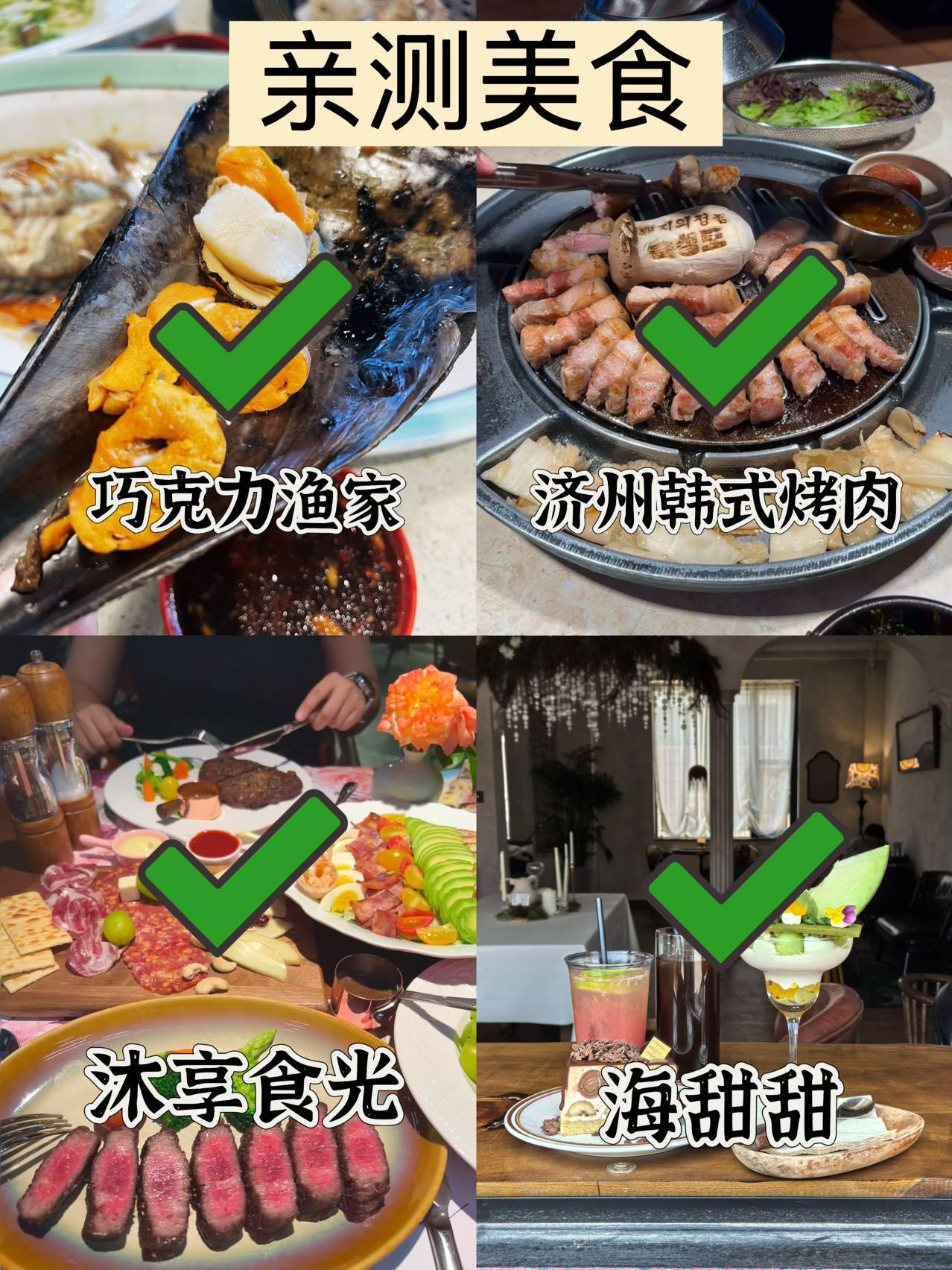 🥩济州韩式烤肉:这家服务员还会帮忙烤👩🍳,不用自己动手超省心🥢。牛五花烤得滋滋冒油🔥,裹生菜🥬蘸酱超香,石锅拌饭拌匀后有锅巴🍚。不过排烟效果一般