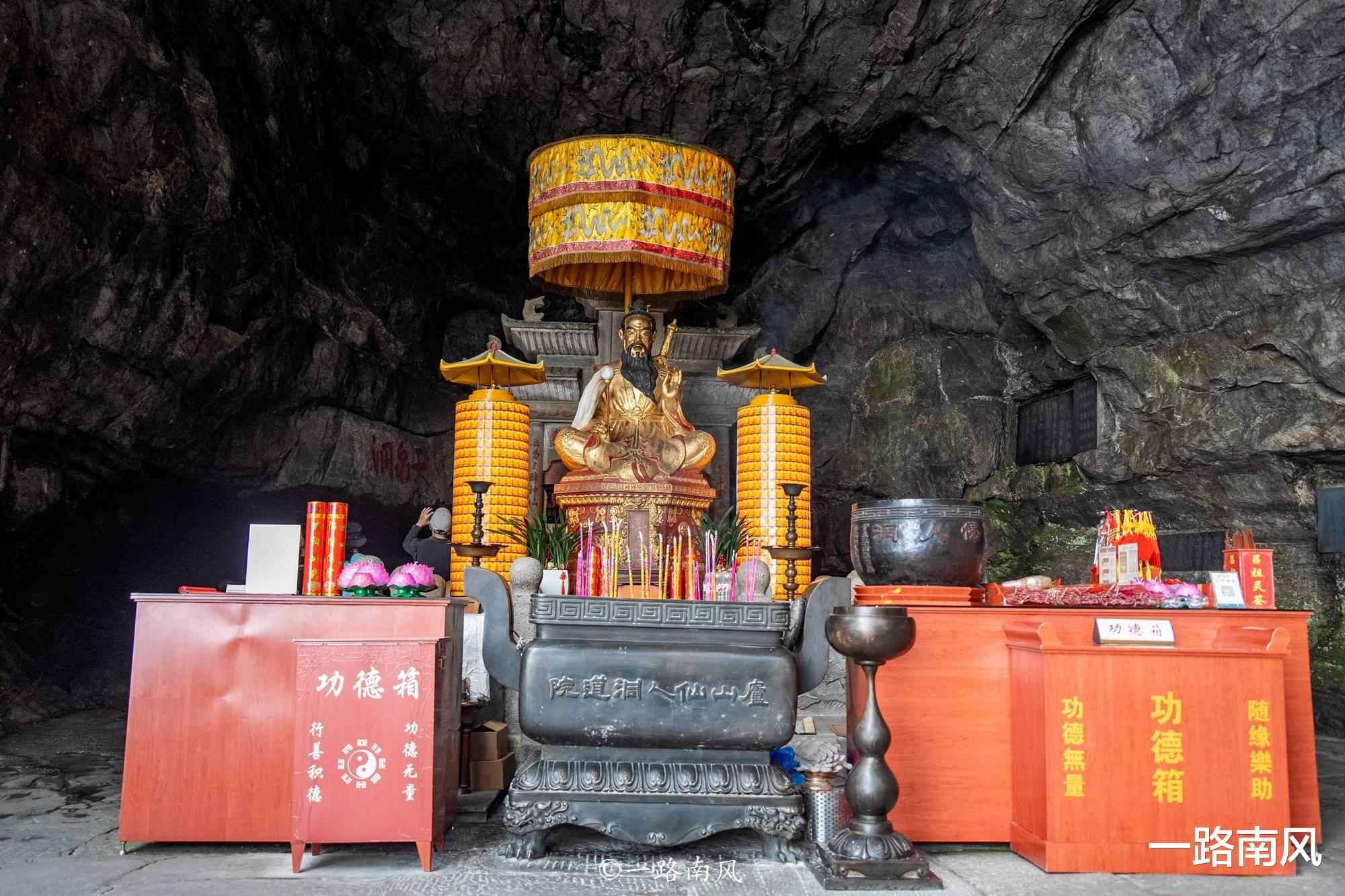 洞内有纯阳殿、蟾蜍石、石松及"一滴泉"等景观