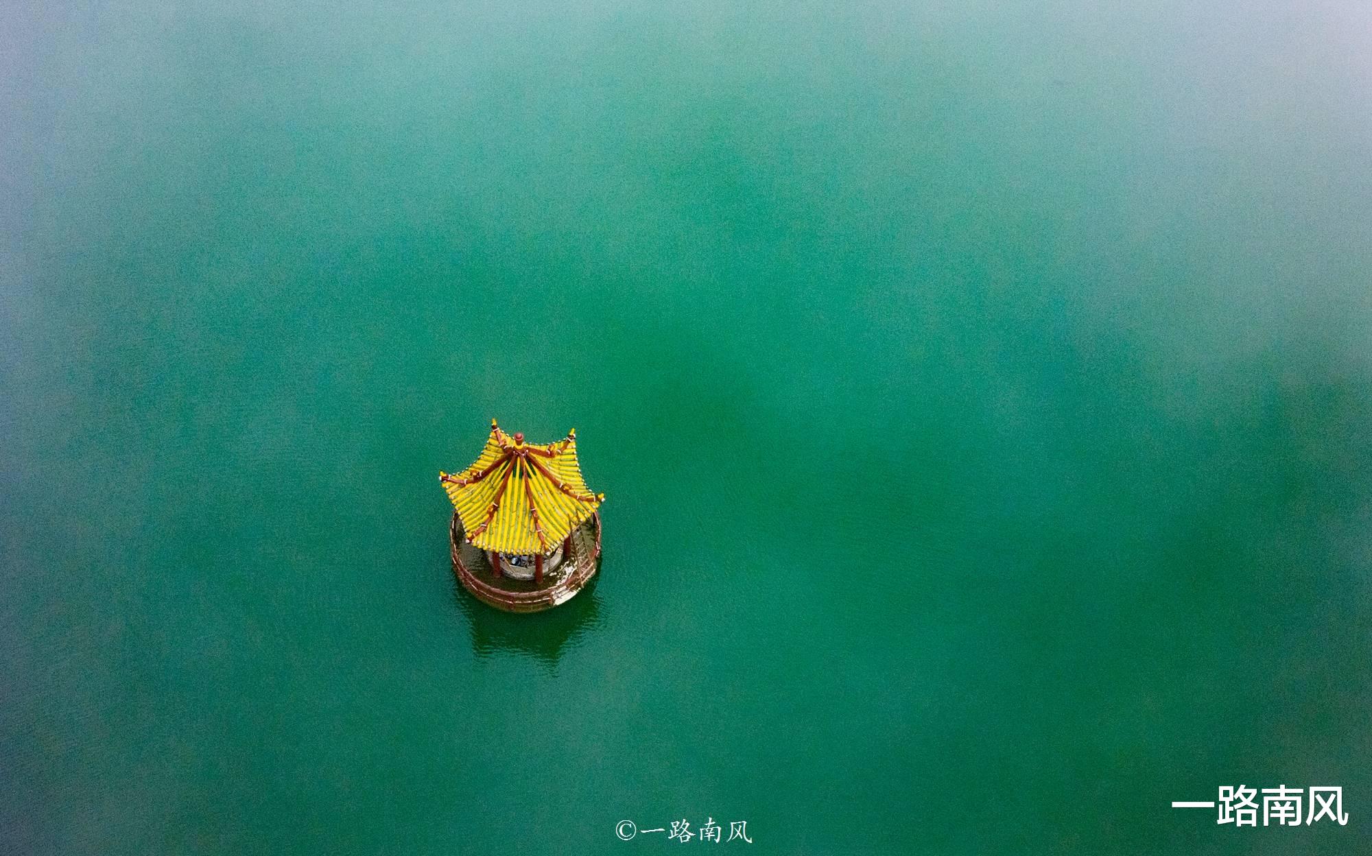 四周峰岭环抱,树木层次错落,绿荫映照湖面