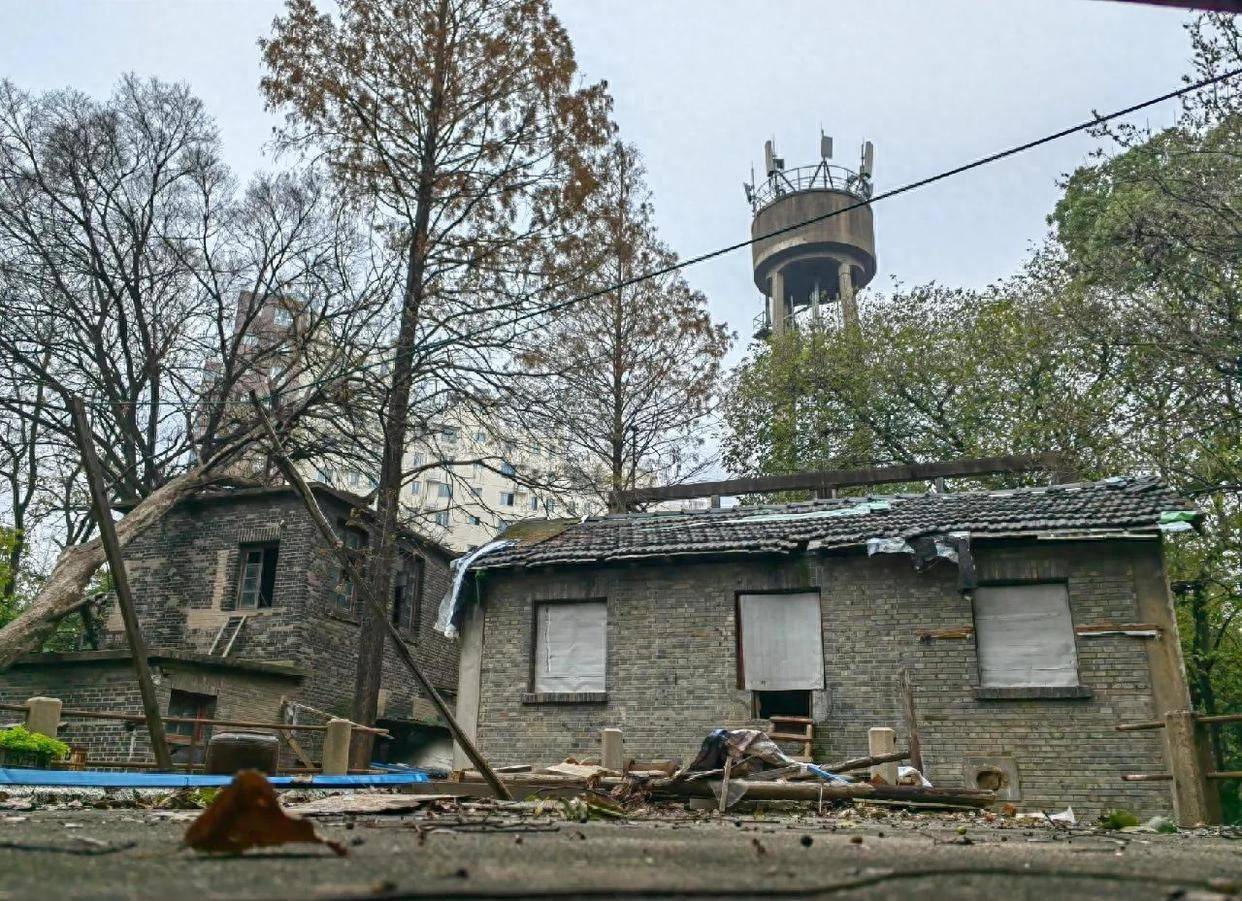 现存三栋二层民国风格主楼及一座圆形平台(推测为原始雷达测试台),整体保存状况: