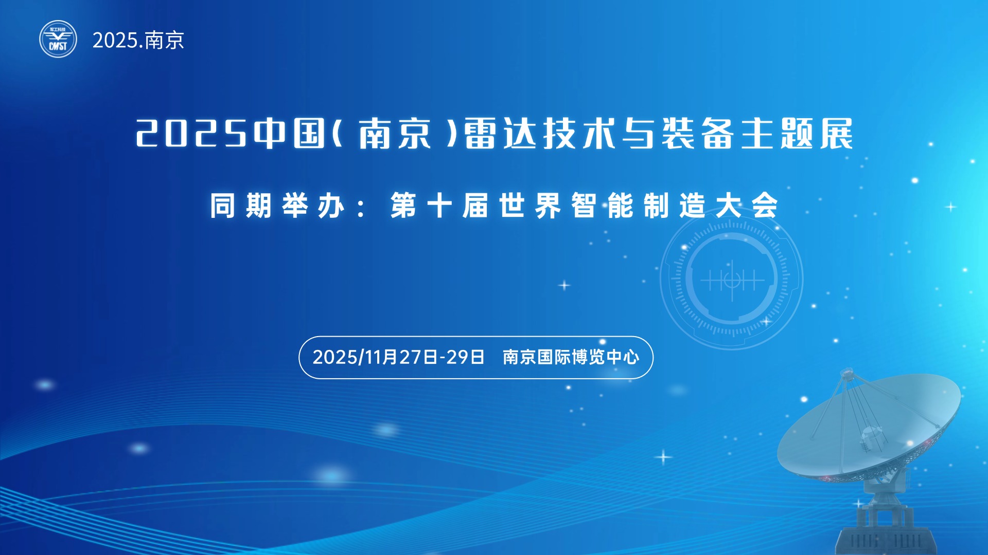 第十届世界智能制造博览会的重要专题展区,于2025年11月27日-29日在南京国际博览中心举行。该展会由工业和信息化部、中国工程院等单位联合主办,以"加快打造智能制造升级版、因地制宜发展新质生产力"为主题,集中展示我国雷达技术最新发展成果。