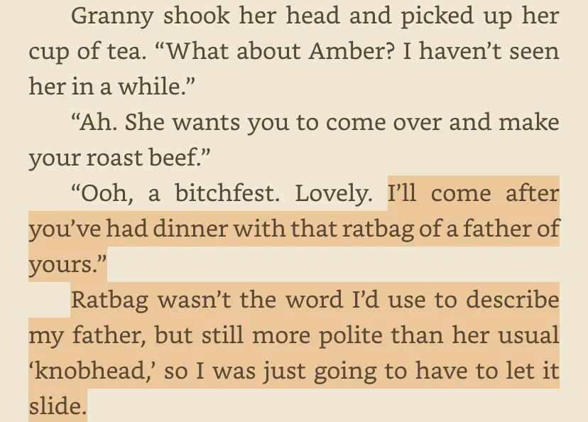 在文中,女主和女主姥姥对她继母是充满怨念与不满的,当然这个继母确实不算是什么伟光正的角色,这个角色设定类似于国内言情小说里写的那种扶不上台面妾室扶正的继母,但是女主姥姥对女主爹也是同样的炮火出击,花式骂人