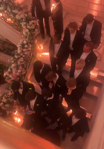 帅气的骑士们都穿着西装等待着他们的舞伴,男孩和女孩们将一起跳舞,这可真是浪漫而养眼的一夜啊。