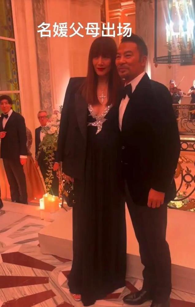 陈婷同样穿了一件蓝色的礼服,她拿了一个丝绒手拿包,陈婷很大气优雅,妈妈的气质远胜过女儿。张艺谋揽着陈婷的腰一起合影,他俩很恩爱的样子。