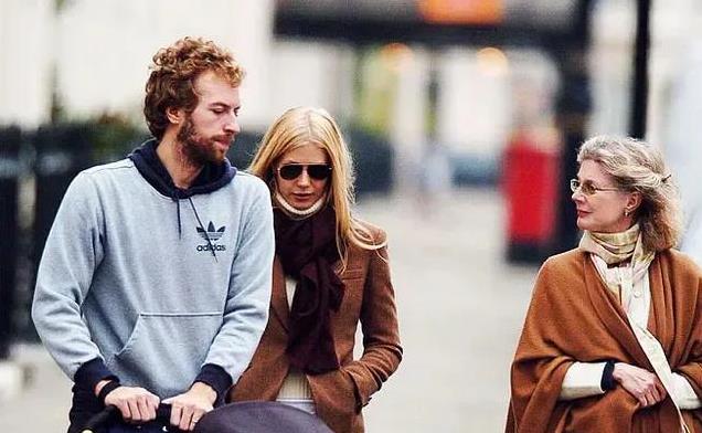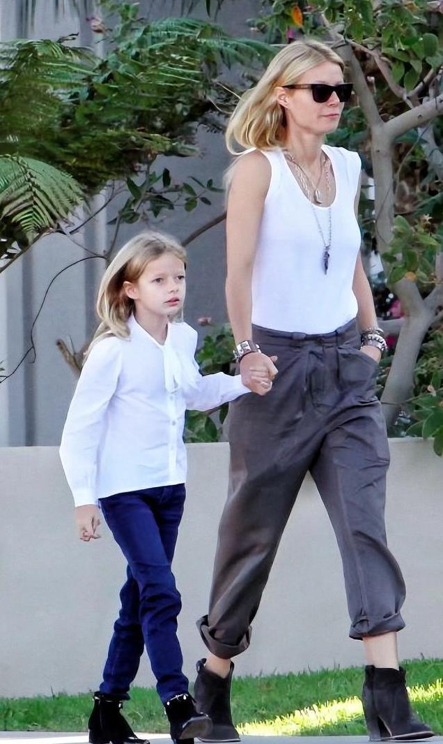 Apple的外婆是女演员Blythe Danner,她出生的时候,外婆和她爸爸妈妈还一起推着她出街,一晃她已经长成了漂亮的名媛了。格温妮丝帕特洛穿了一件黑色波点长裙,她手里拿着红酒,她们一家都来见证Apple盛大的成人礼。