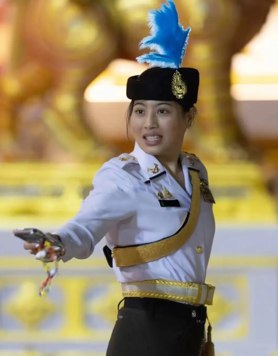 在11月20日的一次检阅仪式活动上,苏提达佩戴一顶黑呼呼的高顶帽子,一身黑色军装出镜,军装上有好多徽章都是她的荣誉。腰上还挂了一把长长的剑显得特别酷英姿飒爽!