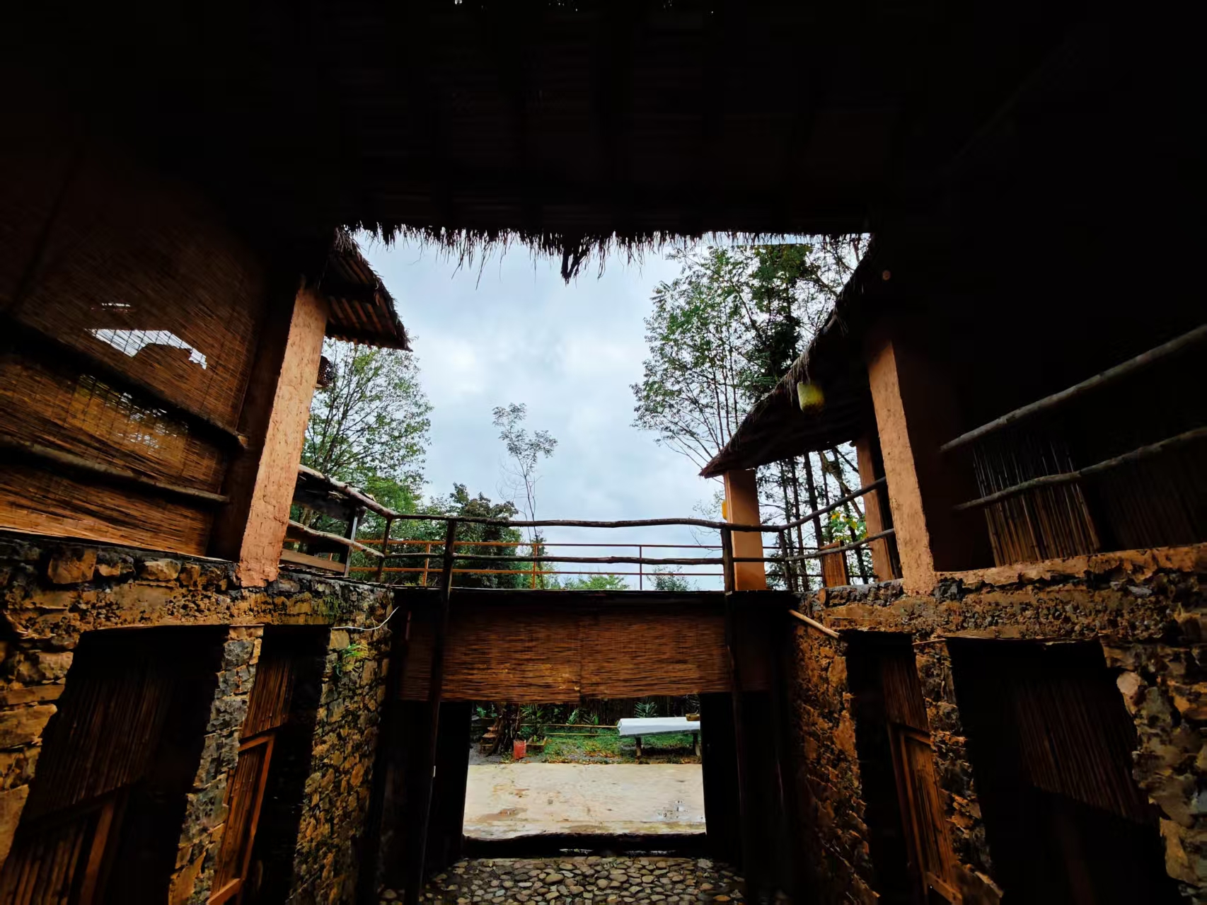 顺着小径前行约莫半里地,一座古朴的山屋映入眼帘。它依着缓坡而建,墙体由鹅蛋大的溪石与黄泥混合构筑,黄泥缝隙里竟钻出几株细小的瓦松,透着岁月的沧桑与倔强。屋顶覆着的茅草已泛出浅黄,根部用藤条紧紧捆扎在木椽上,微风拂过,茅草梢头轻轻摇曳,缝隙间漏下的光斑在地面晃荡,似在诉说着过往山民的故事。门框上还留着模糊的刻痕,像是早年主人标记的身高印记。推开虚掩的木门,“吱呀” 一声轻响,内部空间豁然开朗,四根碗口粗的原木梁柱支撑着屋顶,柱身布满深浅不一的虫蛀痕迹,却依旧挺拔,空气中弥漫着淡淡的木香与泥土的潮气。透过窗棂的菱形缝隙,能瞥见外面的绿意顺着窗台蔓延进来,几片竹叶甚至探进窗内,仿佛与自然融为一体,让人的心境也随之沉静下来。