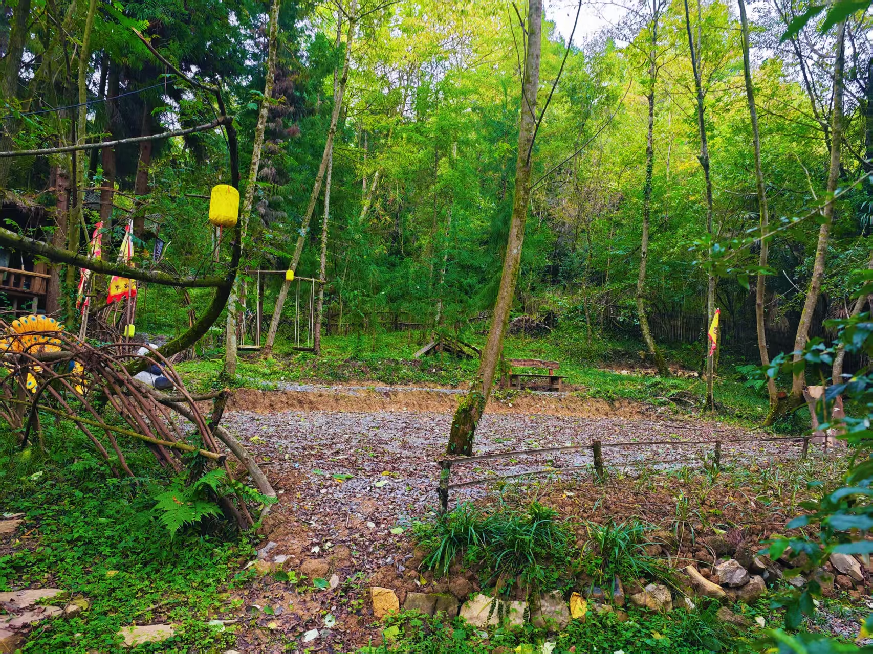 踏入山林的那一刻,并非单一的草木气息,而是混合着腐叶的温润、松针的清苦与野蔷薇的甜香,像一捧刚揉碎的春日草木,顺着鼻腔钻进来,瞬间涤荡了肺腑里积攒的浊气。脚下的小径由青灰与赭红的石子铺就,最大的足有巴掌宽,边缘被岁月磨得圆润,踩上去能清晰感受到石子棱角与鞋底的摩挲,偶尔踢到埋在土中的碎木片,还会发出轻微的 “咔嗒” 声。小径两旁的植被更是热闹,株高及腰的蕨类舒展开羽状叶片,叶尖还挂着晨露凝成的水珠;不知名的紫花挤在石缝里,花瓣边缘带着细细的绒毛;,将这里打造成一个层次分明的天然绿色宝库。