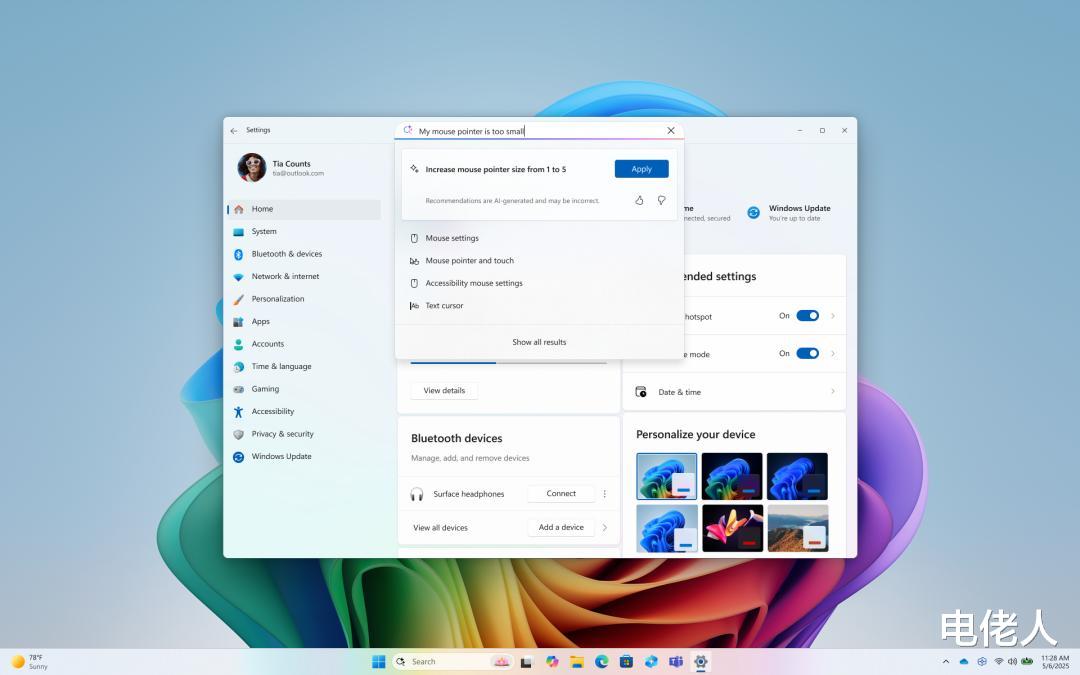 Windows 11 设置中的“电子邮件和帐户”模块更名为“您的帐户”,实现所有账户统一管理,简化账户添加、切换和同步流程,为跨设备使用打造更加流畅的连接体验。