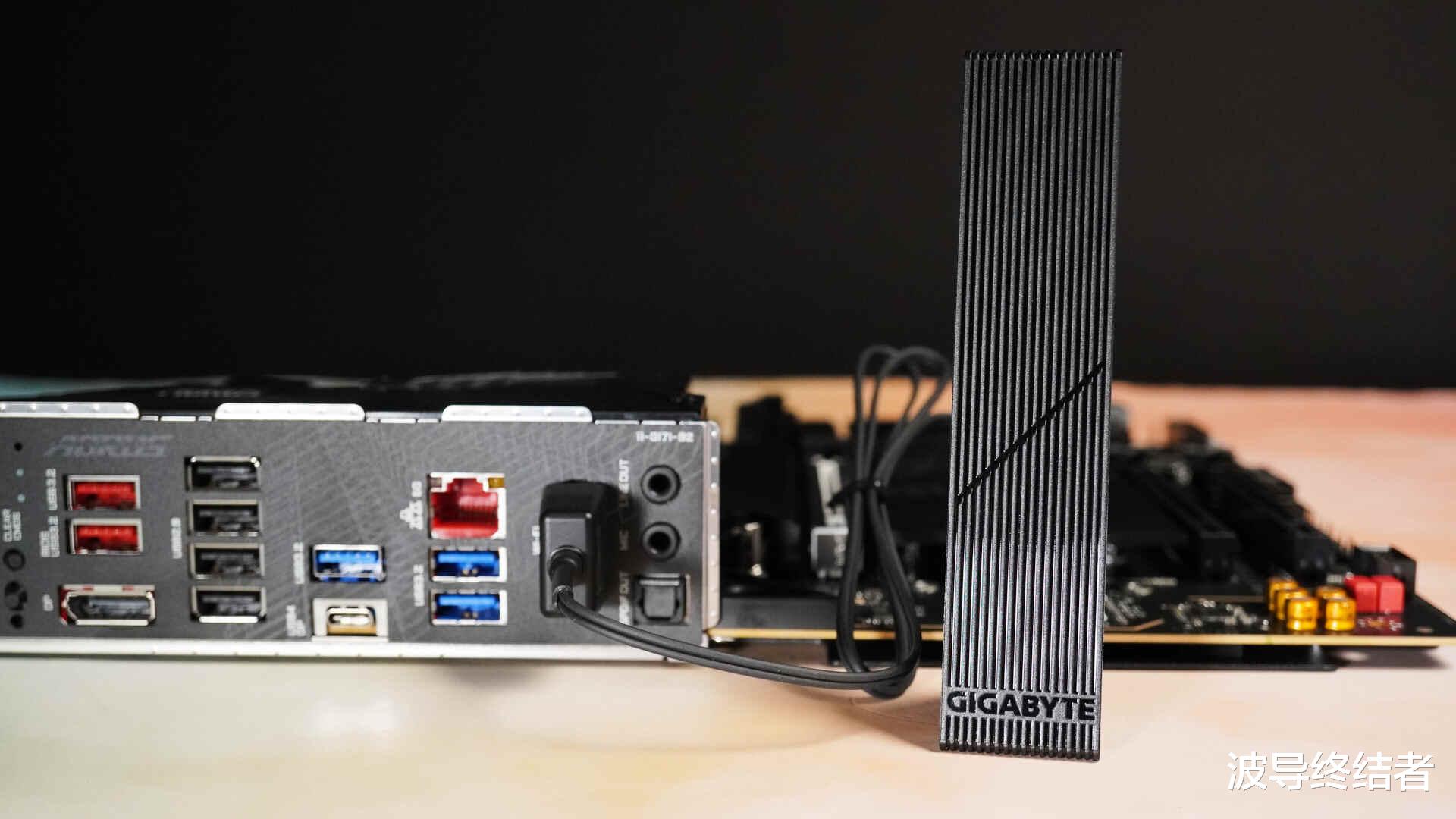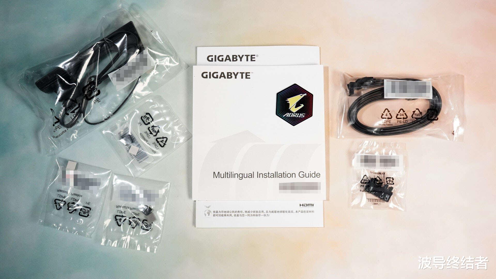配件方面也是给的比较足,1弯1直共2条SATA数据线,3对M.2硬盘垫片,1个开机模组的转接头,还有WiFi7网卡的快装天线。另外还有1个会反射七彩炫光的AORUS标志牌,背部带胶可以贴在任意位置装饰用。