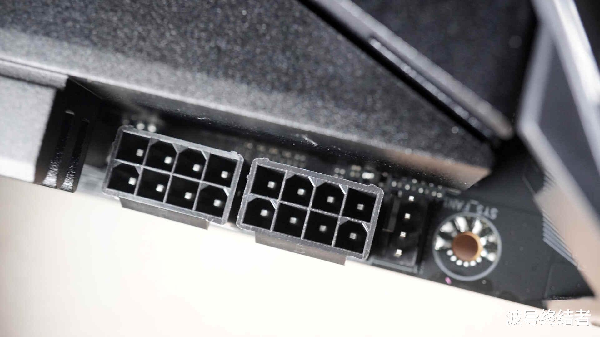 取电接口方面,2个8Pin的CPU供电接口,目前民用主板拉个跑满的Ultra9都是够用的,旗舰主板和电源给满了也就是2个8Pin。旁边还见缝插针安排了个主板风扇PWM插针,方便有些水冷或者多风扇装机方案走线。